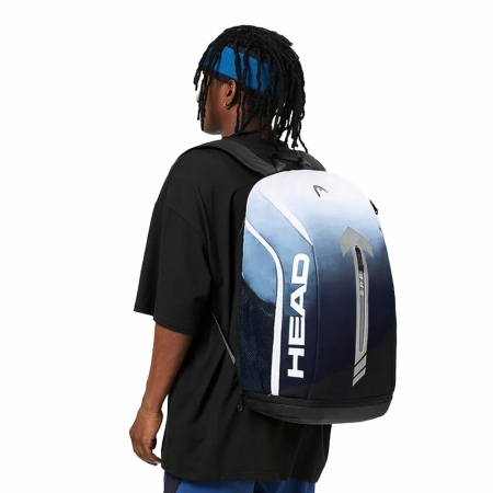 HEAD 後揹包以時尚的黑色與 Tiffany 藍漸變設計,展現出沉穩大氣的風格。這款包尺寸為 335x510x250mm,適合需要攜帶大量物品的用戶。100% 聚酯纖維材質不僅防水且具備高耐用性,非常適合戶外探險或日常使用。