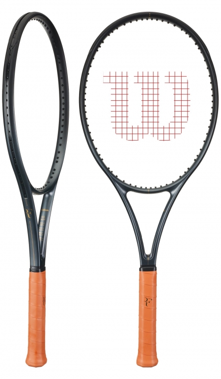 你會發現這是一款與羅傑費德勒合作設計的球拍,