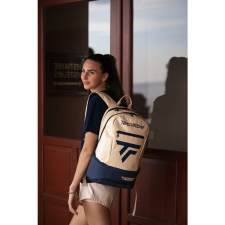 優雅奶茶色搭配海軍藍點綴,呈現經典網球風格