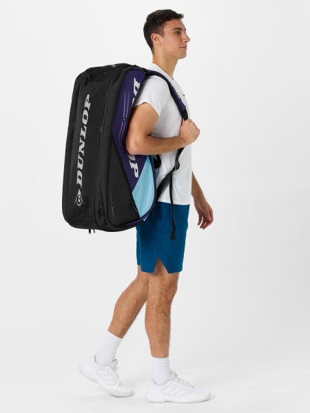 Dunlop FX Performance 12 球拍包是一款耐用、容量大、功能全面的球拍包,是任何認真對待比賽的選手的理想之選。它擁有三個主隔層,可收納大量裝備:一個主隔層帶有溫控內襯(未染色/白色),最多可容納 4 支球拍;中間隔層可用於存放更多球拍,也可分隔成兩個較小的隔層,用於存放鞋子或衣物,因為該隔層也內置了通風設計;第三個隔層最多可容納 5 到 6 支球拍。球包兩側各有一個小型配件袋,包尾處還有一個有通風口的鞋倉。這款球包採用耐用材料製成,並配備符合人體工學的肩帶,足以應付各種場合!