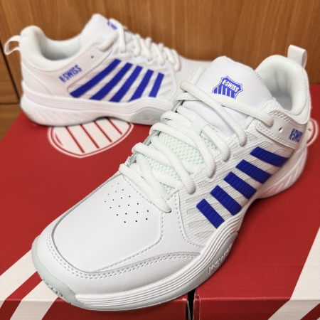KSwiss Court Express 2 鞋款是初學打球或追求經典風格和腳感的球員的理想選擇。皮革鞋面帶來柔軟貼合的腳感,並在需要時提供支撐。泡棉鞋墊和 EVA 泡棉中底的結合,帶來 KSwiss 經典的舒適性和緩震性。大底在易磨損區域進行加固,並採用改良的人字形花紋,確保在各種場地上都能提供良好的抓地力。