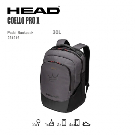 Arturo Coello 專屬系列款與「King Coello」共同設計開發新配色:深灰色(dark grey)高端優雅設計+多處個人化細節側邊亮面皇冠 Logo背帶皇冠 Logo內裡紅色(Coello 喜愛配色)主隔層大開口,取物更方便鞋袋隔層(shoe compartment)可收納兩支球拍吊牌:再生紙+麻繩